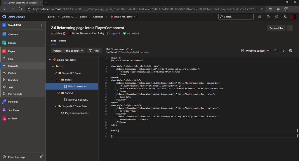 5. Click on a particular commit – 2.6: Refactoring page into PlayerComponent.