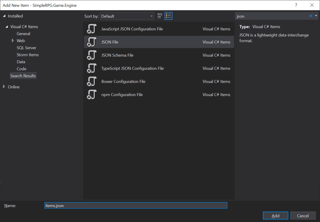 - Create a new folder in SimpleRPG.Game.Engine project called Data.