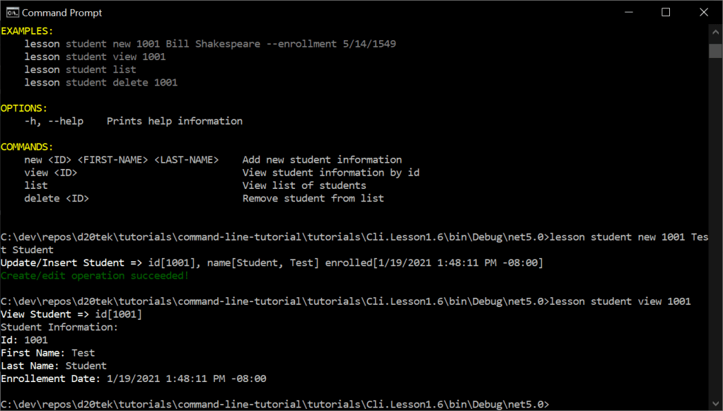 .WithExample(new[] { "student", "new", "1001", "Bill", "Shakespeare", "--enrollment", "5/14/1549" });