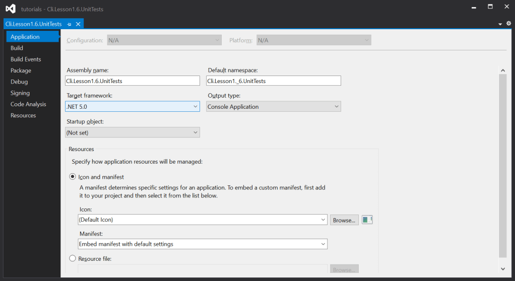 - That will load the ‘Project Properties’ window to the ‘Application’ tab.