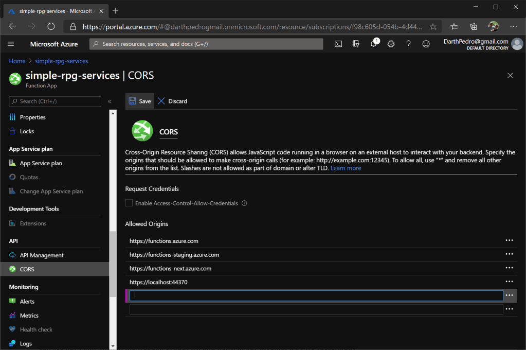 Enable CORS on Azure Functions App