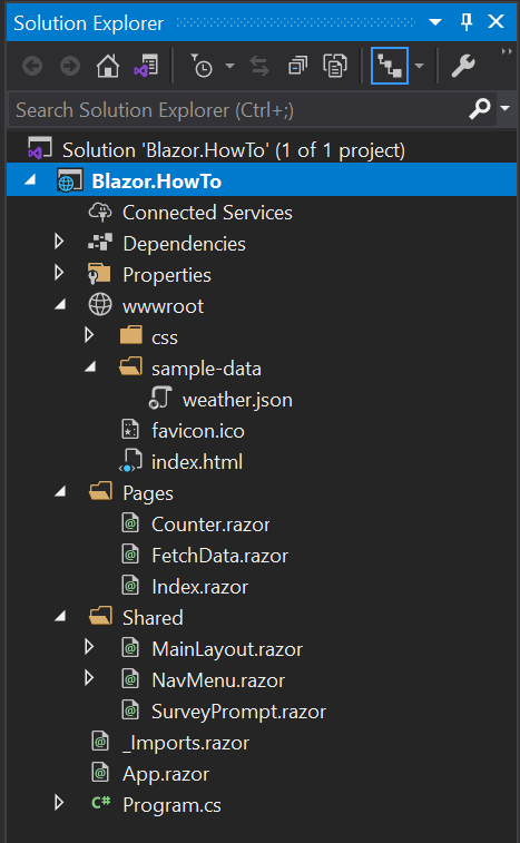 Here are the quick steps to create a Blazor WebAssembly project for .NET 5 in Visual Studio. The basic template creates some extra pages and components, so we will also clean it up to produce a minimal project with a home page. This is a great starting point for all of our Blazor projects.